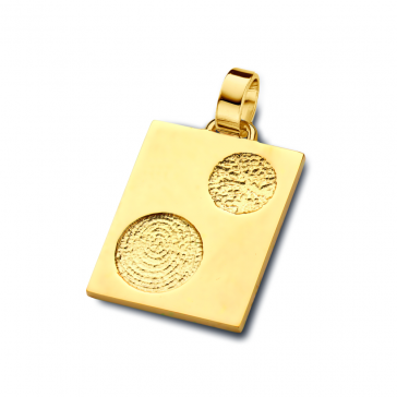 The We is a rectangular pendant of about 17 x 21 mm with two round printsurfaces, which can be provided with a fingerprint and/or footprint.